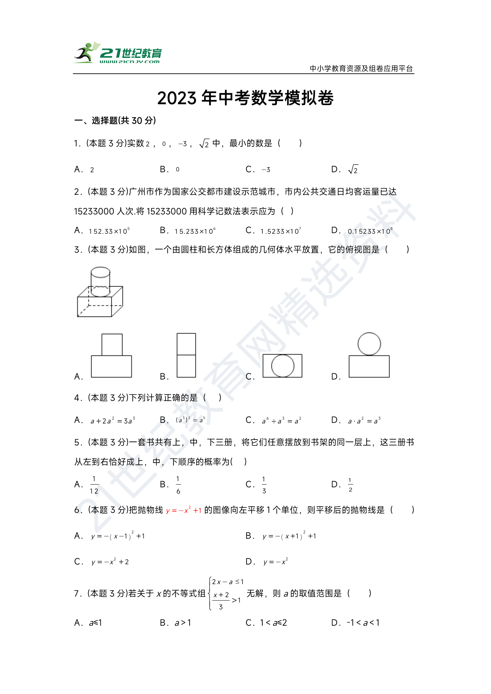 2023年湖南省株洲市石峰区中考数学模拟试卷(一)(含解析 )